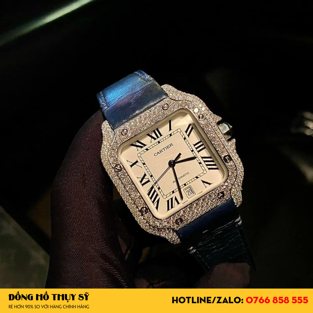 Cartier Santos 40mm Rep 1:1 Full Kim Cương...