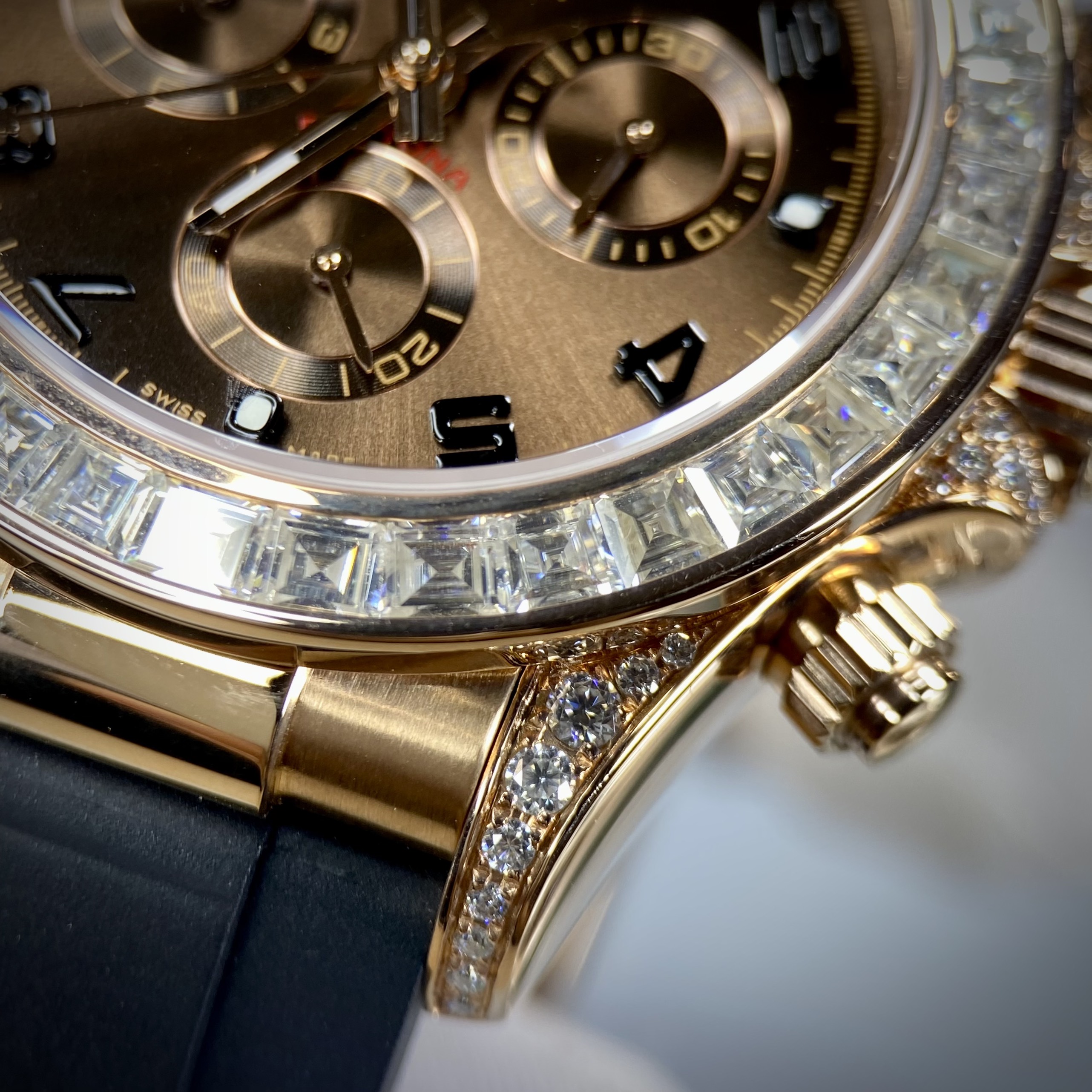 Đồng Hồ Cosmograph Daytona Gold Viền Kim Cương Baguette Replica
