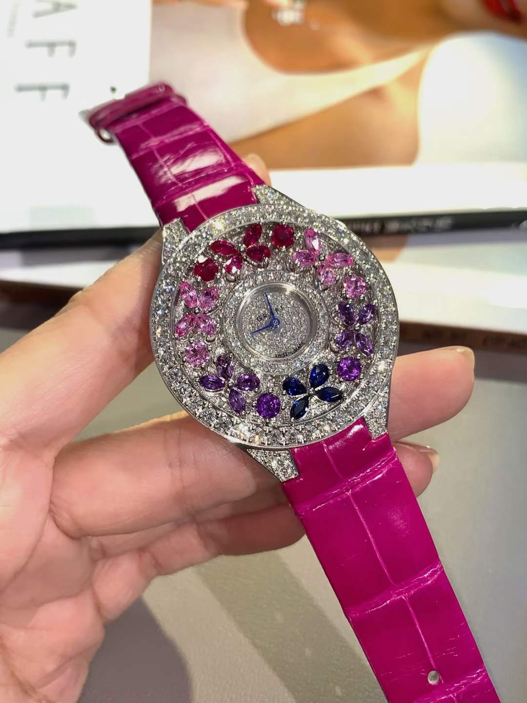 Đồng Hồ Graff Disco ButterFly Mặt Số Kim Cương Họa Tiết Kim Cương Và Rubi Super Fake
