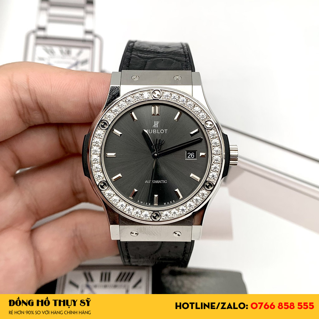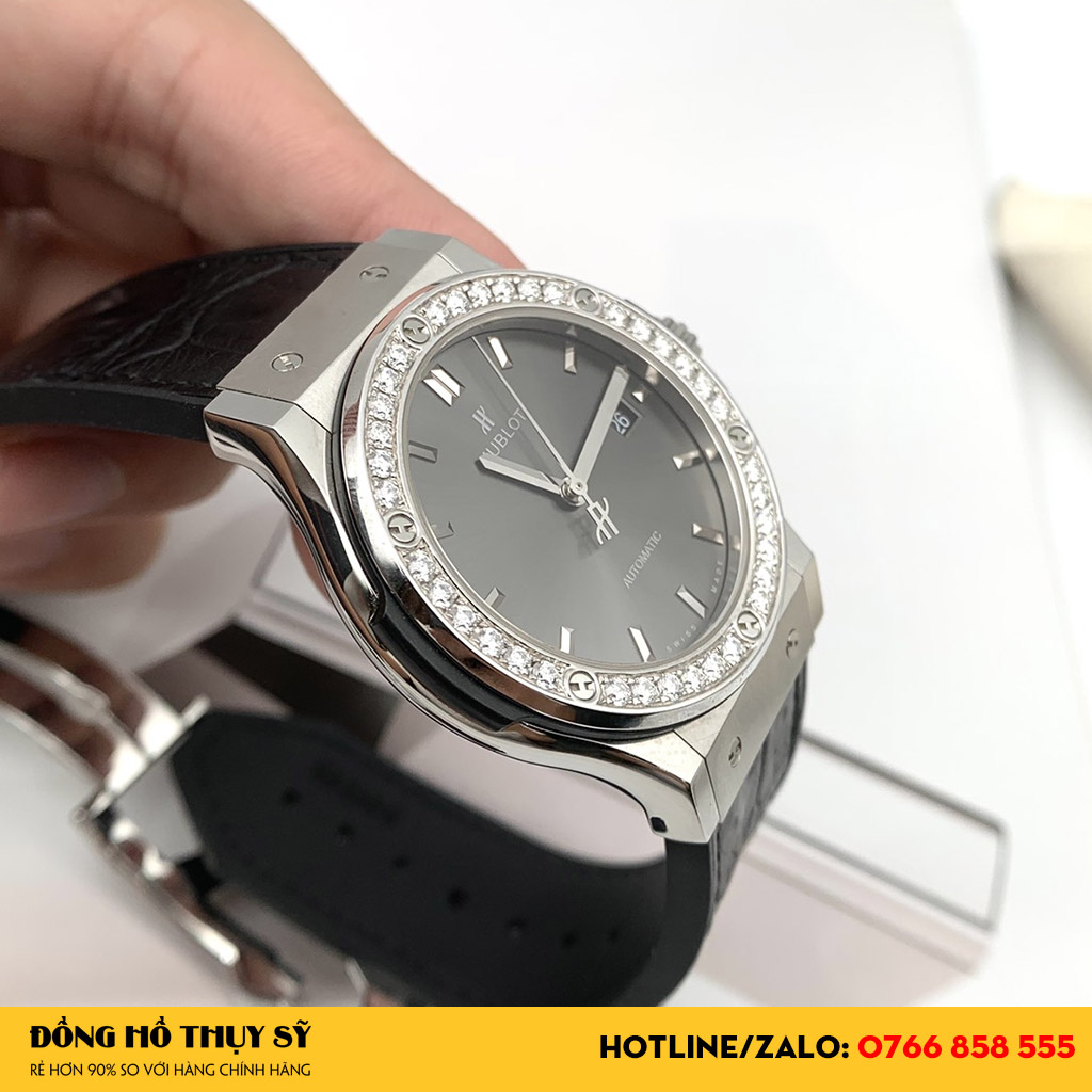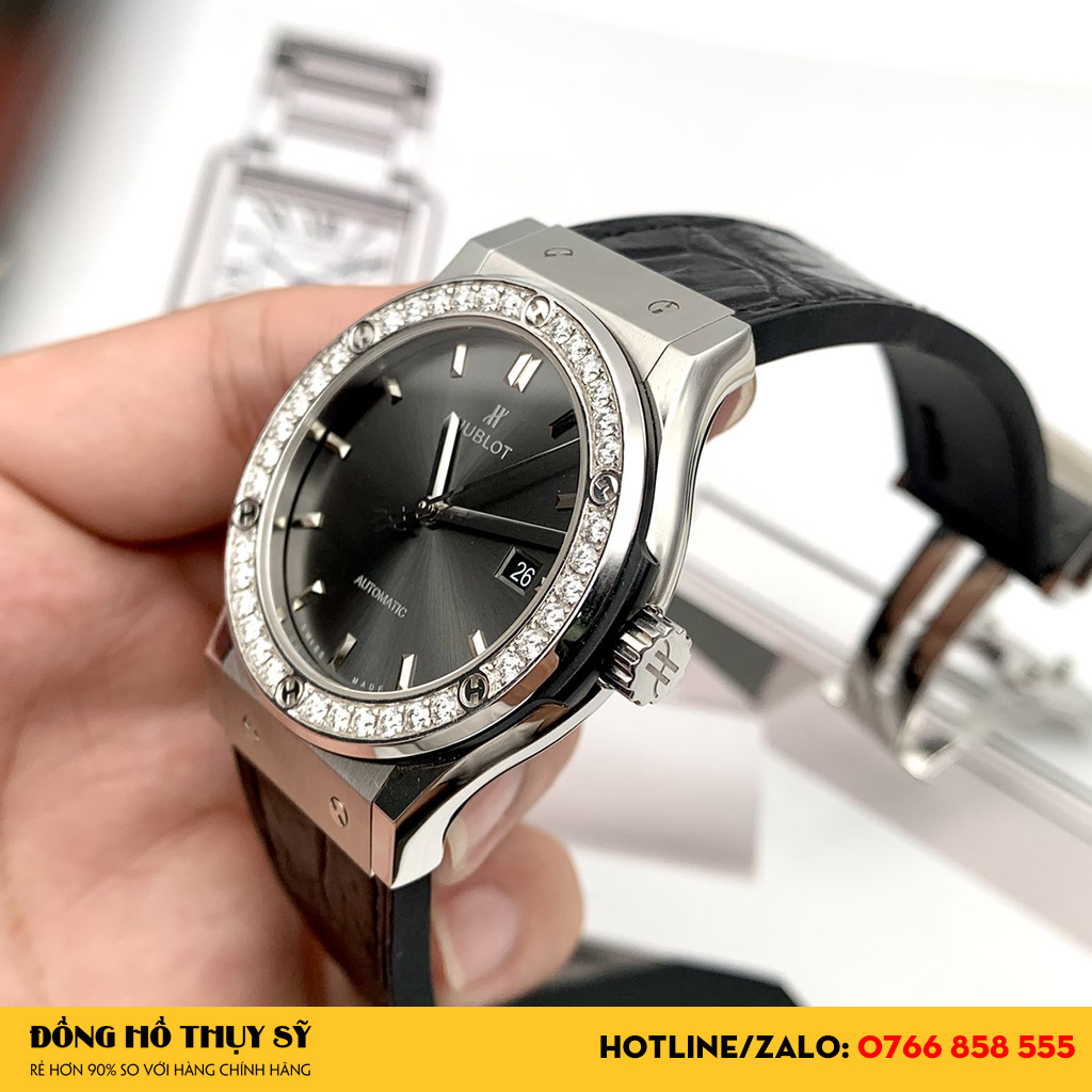 Đồng Hồ Hublot Classic Fusion Nữ Viền Full Kim Cương Moissanite Like Auth