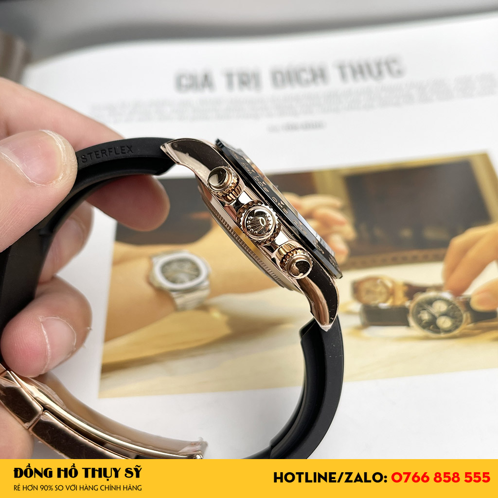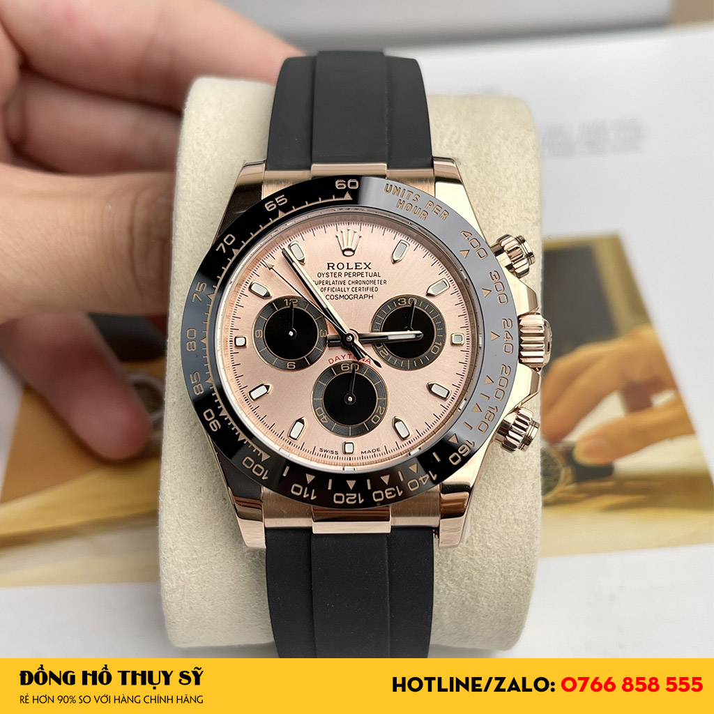 Chiêm ngưỡng vẻ đẹp Đồng Hồ Rolex Cosmograph Daytona Rep 1:1 116515LN Mặt Số Hồng Đen