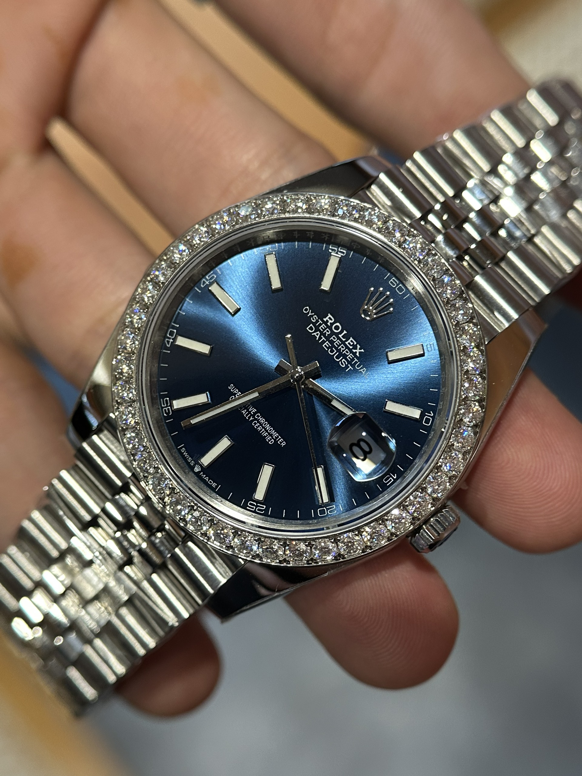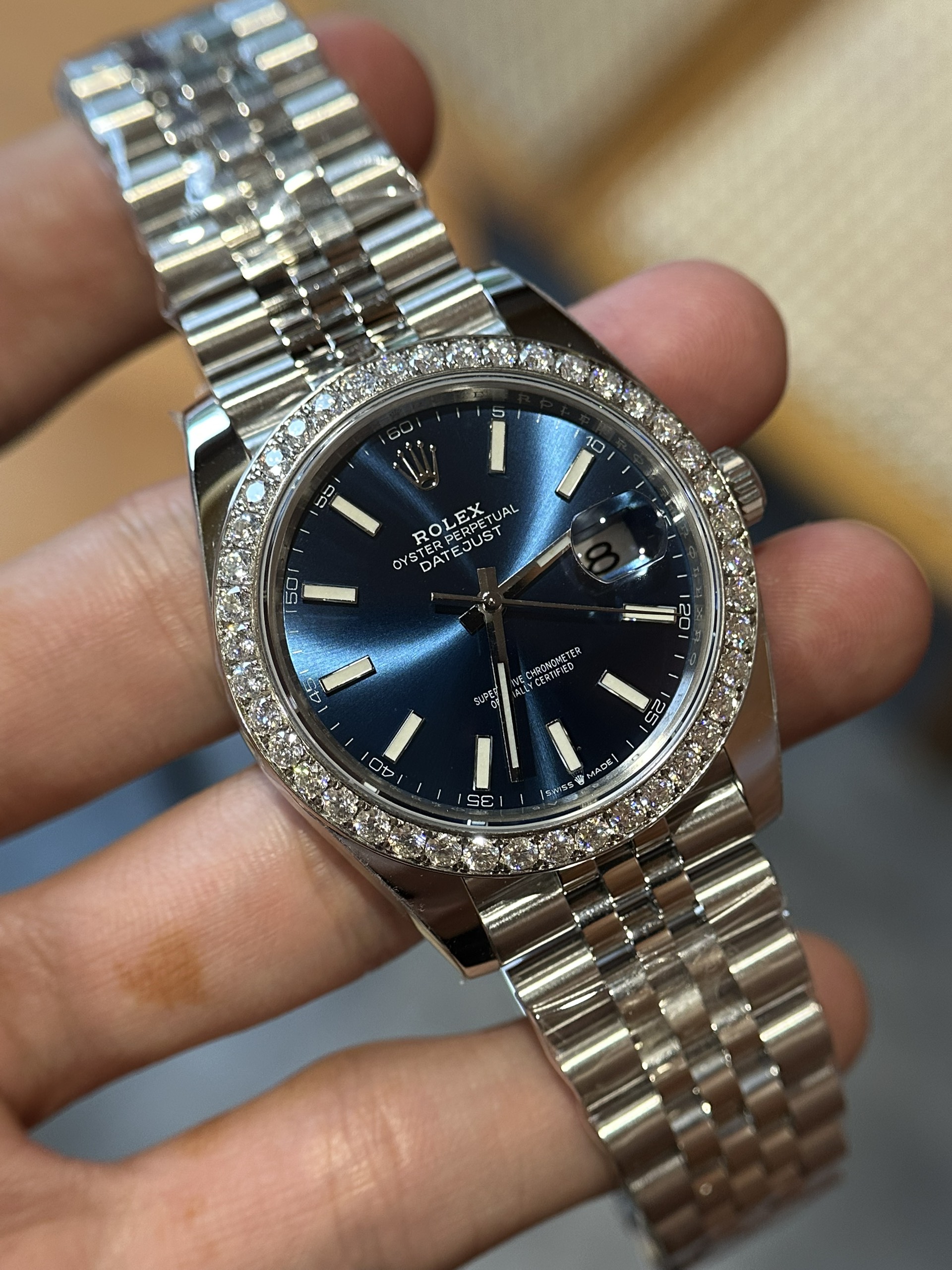 Đồng Hồ Rolex Datejust 126284 Mặt Số Xanh Viền Kim Cương Moissanite Replica kháng nước tốt