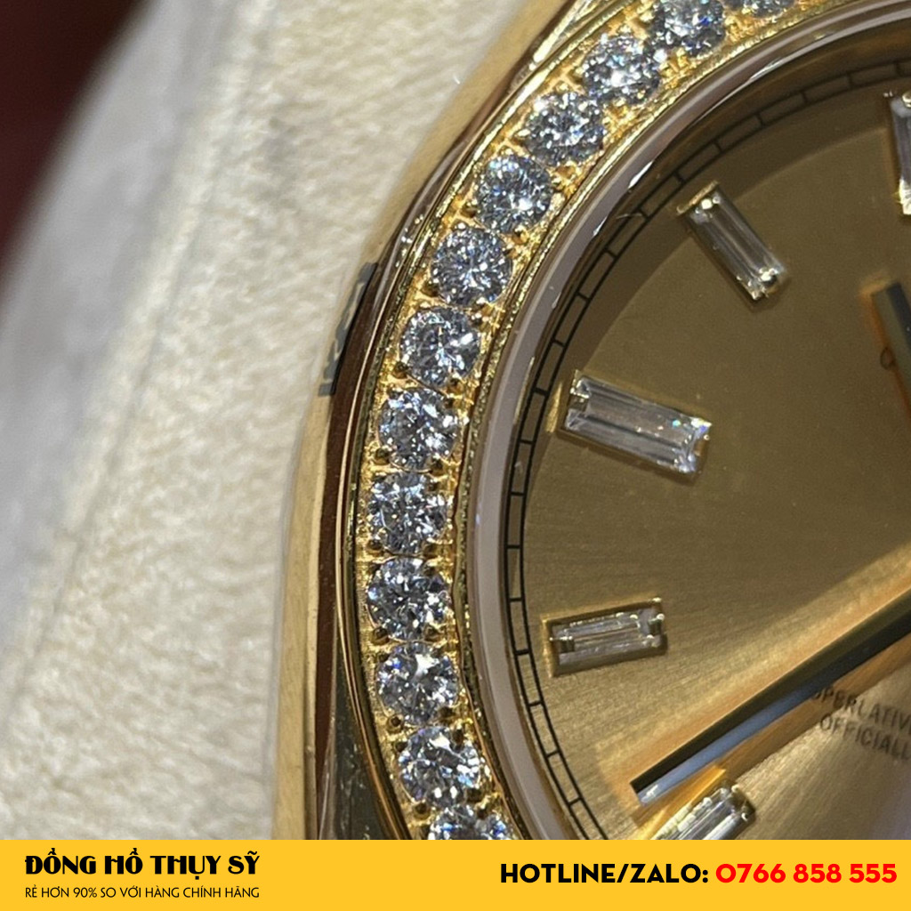 Mẫu Đồng Hồ Rolex Day-Date Replica 40 228348RBR Mặt Số Vàng Champagne Nạm Kim Cương đẹp
