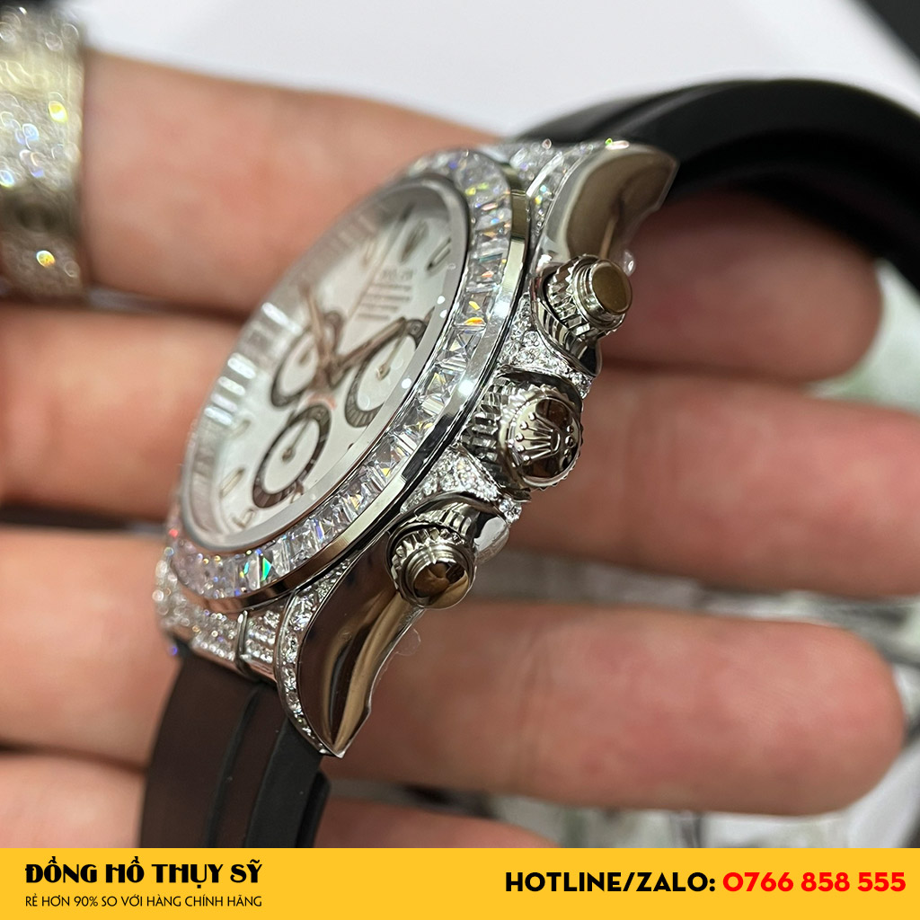 Mặt số Đồng Hồ Rolex Daytona White Viền Full Đá Like Auth đẹp