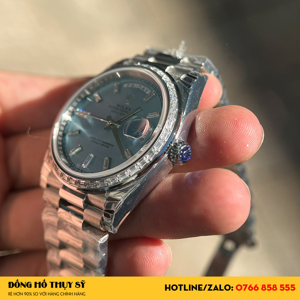 Bộ khung Đồng Hồ Rolex Like Auth Day-Date 118346 Mặt Số Ice Blue Cọc Số Kim Cương bền đẹp