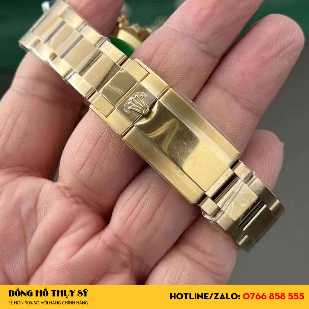 Khung vỏ kiểu dáng Oyster kích thước 40 mm vừa vặn size cổ tay nhiều người. Màu vàng vàng 18 ct sang trọng và bền đẹp theo thời gian. Vỏ chính Đồng Hồ Rolex Replica Monobloc ấn tượng.