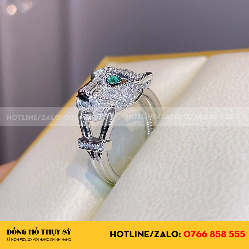 Nhẫn Cartie Đầu Báo Vàng 18K Lục Bảo