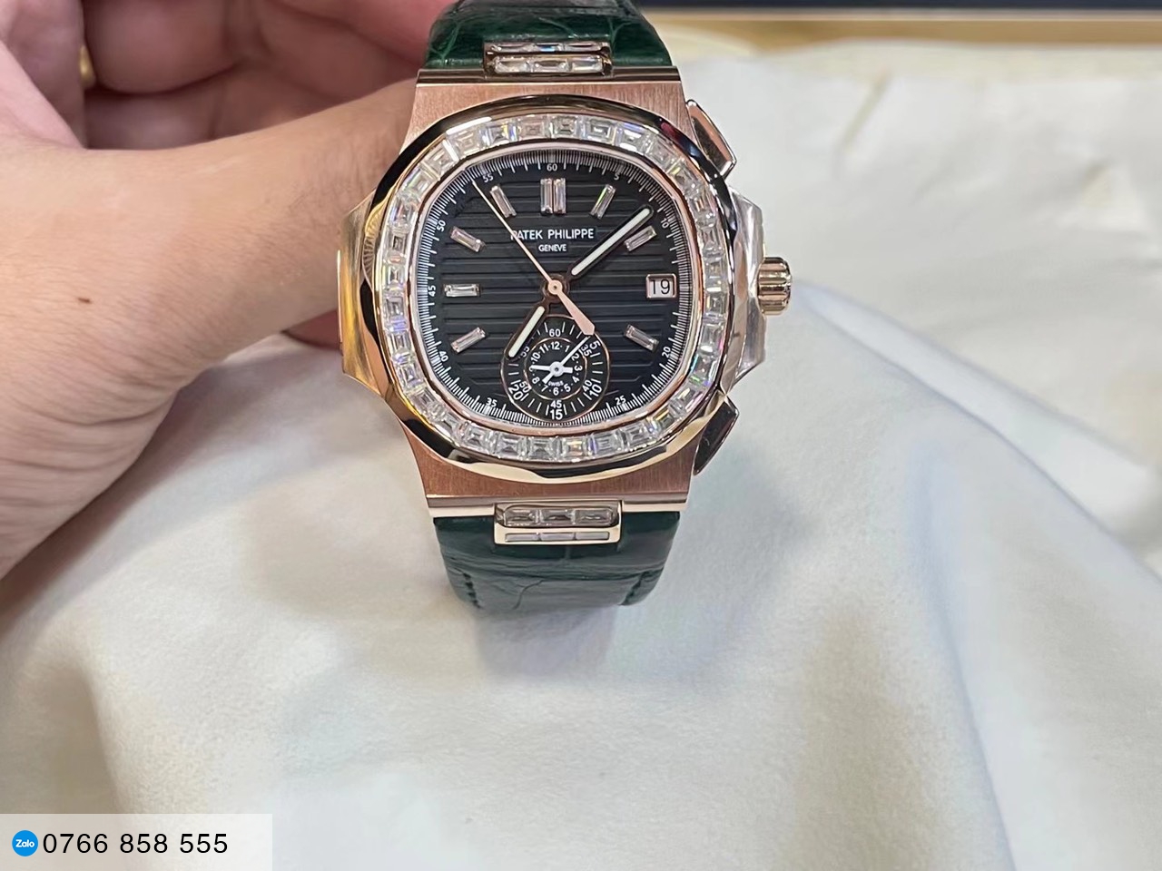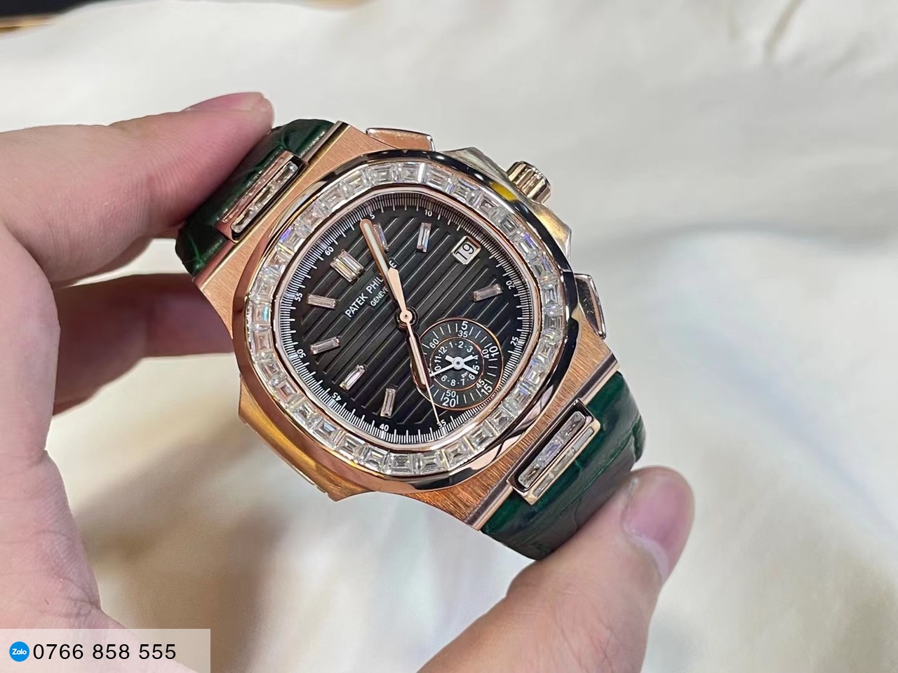 Rolex datejust chế tác nạm đá xanh...