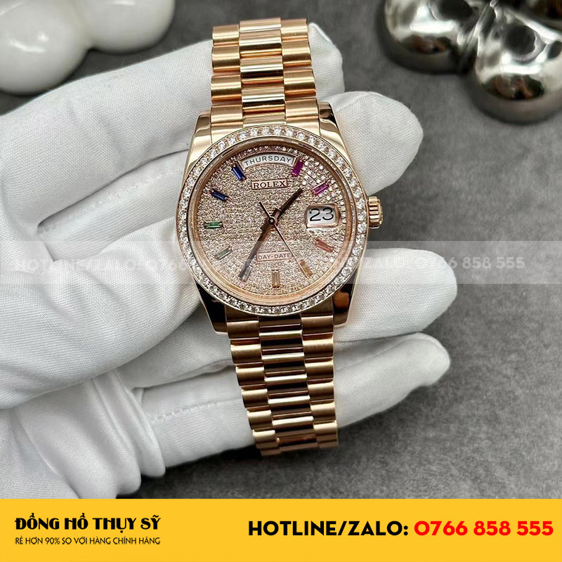 Rolex daydate 40mm chế tác vàng trắng 18k...